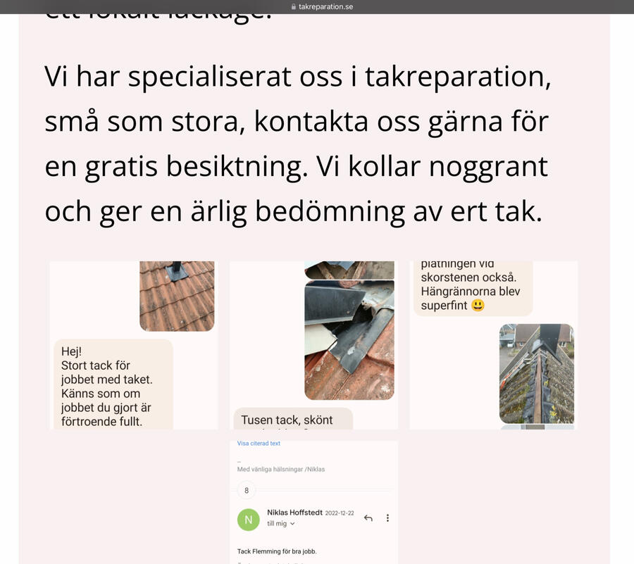 Takreparation erbjuder Gratis takbesiktning och offert. Vi har mera än 25 års erfarenhet av takreparationer.Domänen akuttak.se Marknadens starkaste namn för jourjobb!